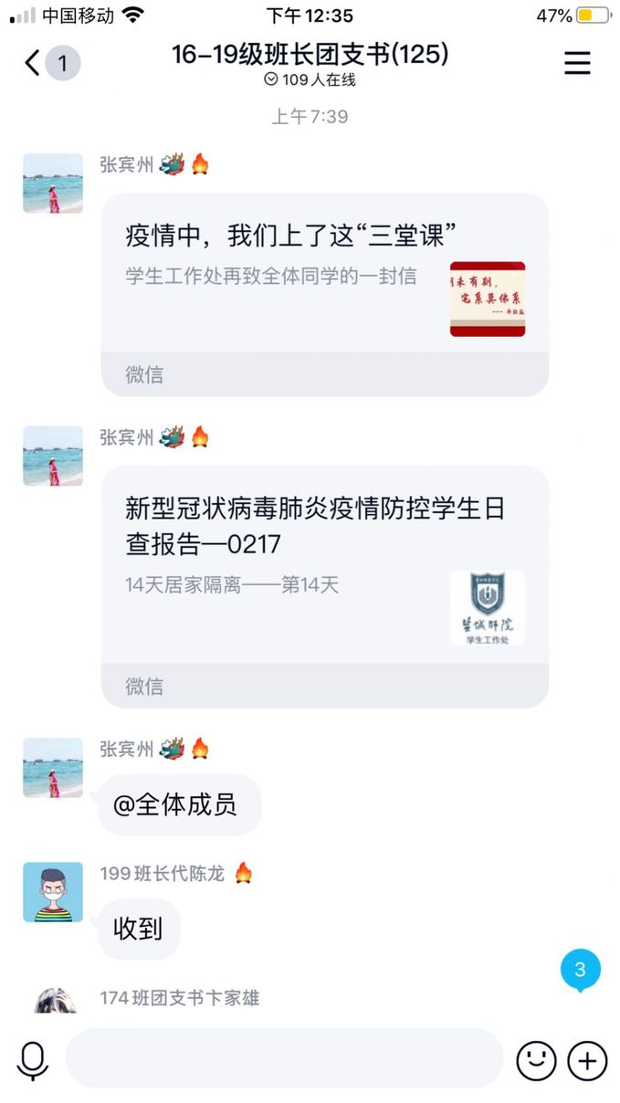 yl1111永利集团成立新型冠状病毒防控工作领导小组,严格执行日报制度,逐一排查师生健康状况、所在地、动向及亲属情况,建立专项工作群开展疫情防控工作。此外,由yl1111永利集团学工书记牵头,院团总支组织青年团员骨干开展各类线上主题团日活动,传递权威发布和防控指南,对网络上的不实信息进行辟谣,在线播放防疫措施微视频,制作暖心卡片为武汉祈愿加油,引导全院团员青年认真学习贯彻关于新型冠状病毒感染肺炎疫情工作的各级党政决策部署,坚决执行学校各项疫情防控工作规定,汇聚青年正能量,展示传递“外院人”的家国情怀和责任担当。