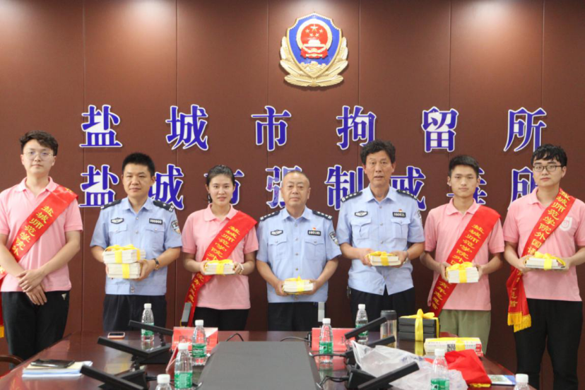 盐城市强制戒毒所所长郭琳、政委栾巨林和副所长成孝康带领老员工志愿者们参观了所内的业务设施和宣传展区,观看主题短片,并召开禁毒防艾知识讲座,详细讲解了“中国禁烟传统”、“新型毒品辨识”、“禁毒法律法规”、“毒品的身心危害”和“预防毒品侵蚀”等方面的内容,为老员工禁毒服务团利用暑期顺利开展公益宣讲、知识普及等活动打下了良好基础。讲座中,郭琳所长与老员工们积极互动,希望他们能自觉抵制“大麻合法化”等错误思想,摒弃猎奇心理,珍惜美好时光,在禁毒事业中发出青春声音、贡献青春力量。