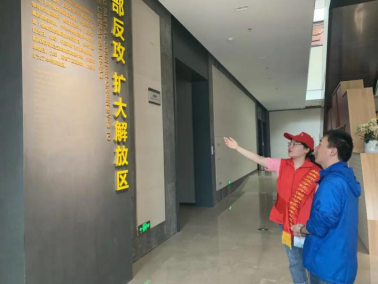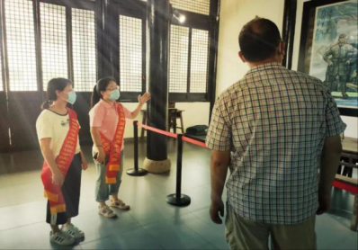 在活动中,讲解员先带领志愿者们游览了泰山庙并给他们讲解泰山庙蕴含的人文故事及历史渊源。在讲解中,在场的员工代表听到新四军的英勇事迹后无不为之精神振奋。在经过行专业培训后,由志愿者们对向前往泰山庙游览的游客进行引导和讲解。同学们积极投入其中,宣传铁军精神,讲好新四军的红色故事。