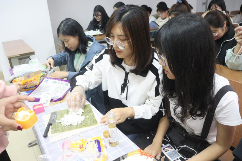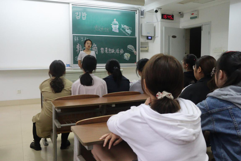 浪花译社邀请外籍教师Alicia参加活动,以“新学期,新目标”为主题展开小组讨论;韩学社以特色美食紫菜包饭制作的体验教学,让同学们充分地感受韩国饮食文化的魅力;香榭丽舍社团向大家介绍了法国浪漫瑰丽的地理风景和人文风光,体味中法文化的异同;E时代社团组织同学们欣赏俄罗斯经典电影《他是龙》,同学们在享受视听盛宴的同时也感受到了俄语的魅力。社团学长学姐分享外语学习经验,2020级新生积极发言,既锻练了员工的语言表达能力,又绽放了自己的性格色彩。