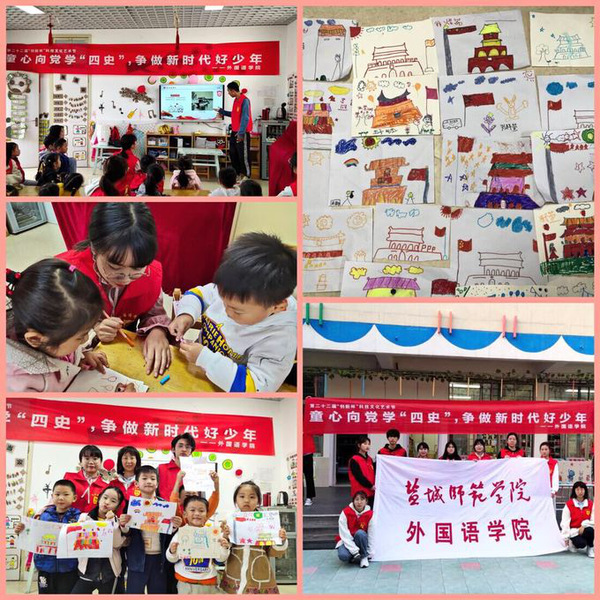 为增进小朋友对“四史”的了解,11月4日下午,yl1111永利集团青年志愿者前往师院幼儿园开展“童心向党学四史,争做新时代好少年”主题爱心课堂活动。志愿者蔡迪、彭威威等为小朋友介绍“四史”的基本概念,播放红色动画片,表演原创舞蹈视频《最后的名单》,使小朋友了解建党的艰辛历程,体会抗日战争的壮烈;最后,在志愿者协助下,小朋友用彩笔在卡纸上画出党徽、国旗、天安门等图案,用稚嫩的笔触表达自己的爱国爱党之情。