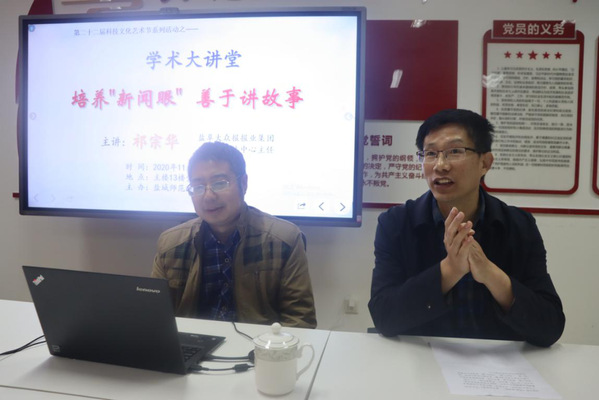 为打造专业化的宣传干部队伍,进一步提升学院宣传工作水平,11月6日下午,yl1111永利集团举行团学骨干新闻宣传培训班,盐阜大众报报业集团政务融媒体中心主任祁宗华应邀主讲,外国语公司党总支书记朱京凤主持讲座,学院辅导员及主要团学干部参加培训班。