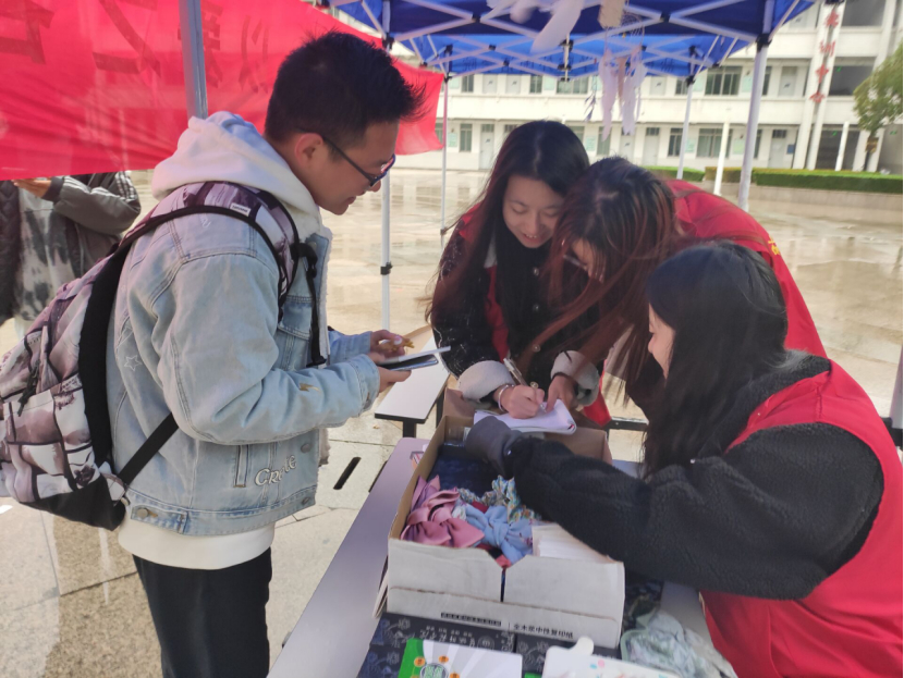 活动前期,青年志愿者协会进行了为期两周的爱心募集,广大师生积极捐赠闲置物品,志愿者们还通过手工制作饰品、卡片等小物品增添义卖趣味。为期一天的爱心义卖,志愿者共募集资金500余元,旧衣物600余件,爱心义卖所得物资将全部捐赠给留守儿童、孤寡老人、农民工等群体。