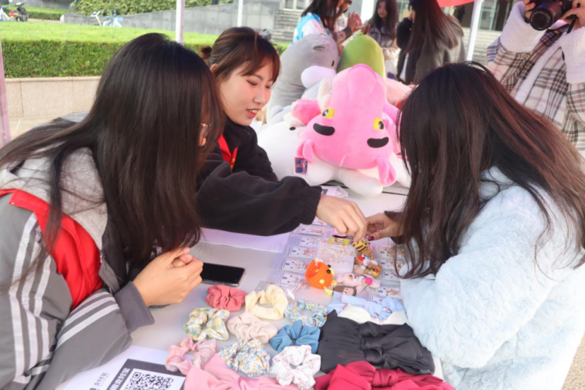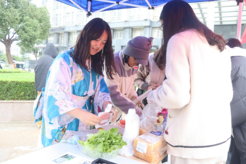 活动现场分为手工区、闲置区、捐赠区、服饰区、美食区五个部分:手工区摆放了志愿者们DIY的发饰、耳饰、玩偶等,闲置区陈列了面向全校员工爱心募集的二手闲置,捐赠区供来往员工现场募捐。在异国文化展示区,各专业志愿者穿着英、法、俄、韩、日等国服饰,现场制作各国美食。参与爱心义卖及爱心募捐的同学可边享用美食,边听志愿者讲解各国服饰文化及美食文化。活动临近尾声,志愿者们还为现场同学们带来了异国服饰走秀,将现场气氛再次推向高潮。