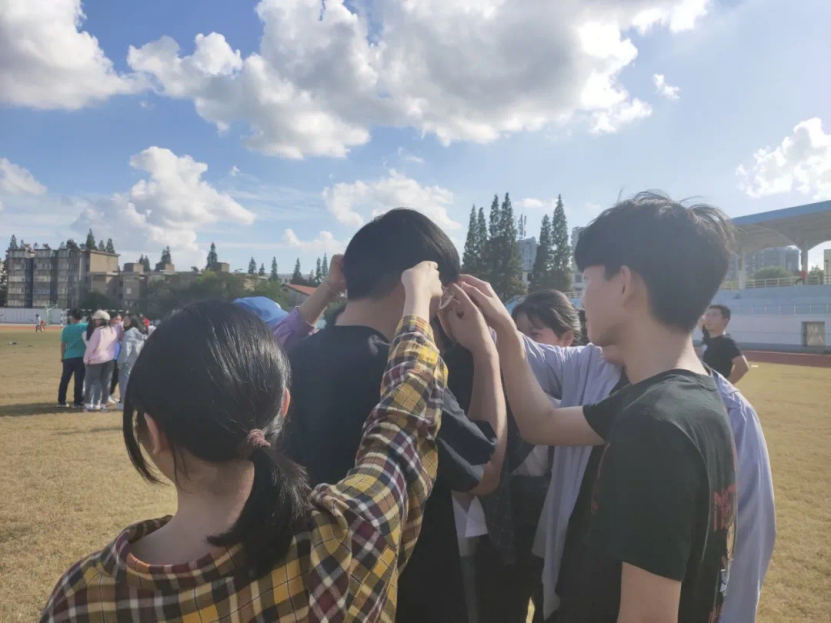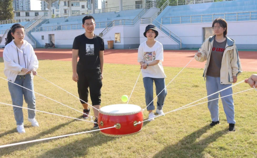 “叫出你的名字”游戏,要求大家在短时间内记住队友姓名,增强团队熟悉感和凝聚力。“口香糖黏黏黏”游戏由辅导老师发出口令,同学们分别指出具有某项特征的人。四轮游戏,目标从明确、到分散、模糊、再到丢失,大家完成速度依次递减,游戏结束老师带领大家及时总结反思:只有明确目标,才能加快前进步伐。“同心鼓颠球”游戏考验同学们的团队协作,大家在不断练习中总结经验,学习征途中的每一个坏习惯都可能成为成功的绊脚石。报数游戏中,同学们一次次挑战自我极限,不断突破。凡事全力以赴,总能超越曾经的自己。