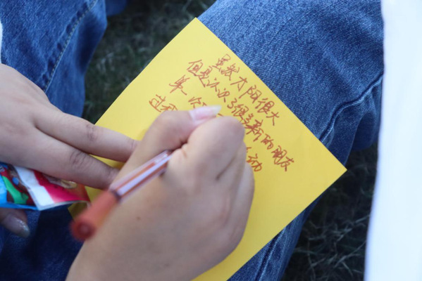 活动临近尾声,每位同学在彩纸上写下感悟及期望。此次团体辅导活动不仅帮助新生们彼此熟悉,增强集体荣誉感,更是通过设计的系列沉浸体验式游戏帮助他们认识到尽早树立学习目标,养成良好学习习惯,为目标全力以赴的重要性。