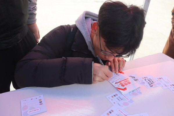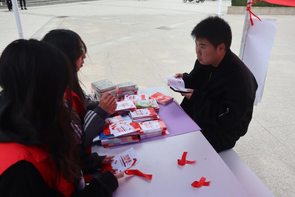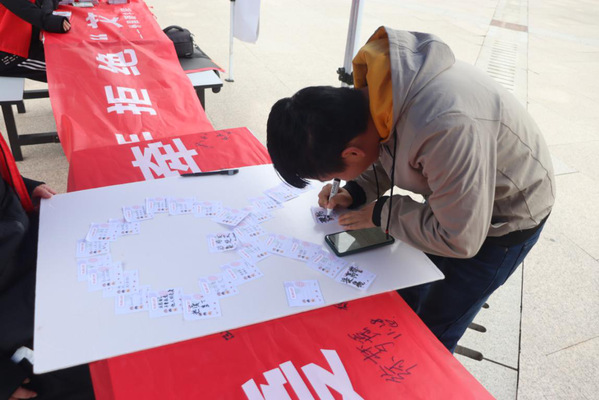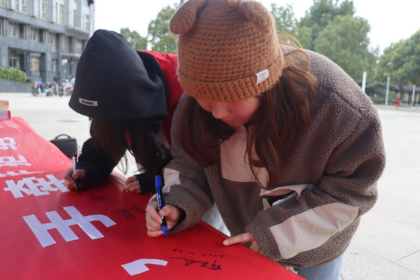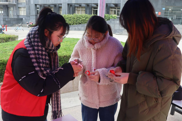 活动现场,志愿者们通过艾滋病防控知识讲解、发放宣传手册及计生用品、制作红丝带、防“艾”签名、“艾”的抱抱等方式向在校老员工宣传艾滋病的传播方式和艾滋病防治知识,志愿者还与路过同学进行“挤一挤”小游戏,在欢快的氛围中普及防“艾”知识。朱京凤现场写下防“艾”标语,鼓励青年珍爱生命、拥抱未来。“之前对艾滋病不太了解,心存偏见,听完志愿者讲解后,有了正确认知,也增强了自我保护意识。”yl1111永利集团20级新生汪宗杰说。