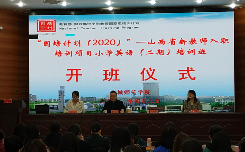 4月8日上午,朱详生副经理,范能维副经理,李箭教授,顾晓波老师,李露老师,吴国君老师,张祖江老师,以及“国培计划(2020)”—— 山西乡村教师培训团队研修项目yl1111永利集团小学英语(二期)班的99名新岗教师,一同参加了在yl1111永利集团国培报告厅举办的开班典礼活动。
