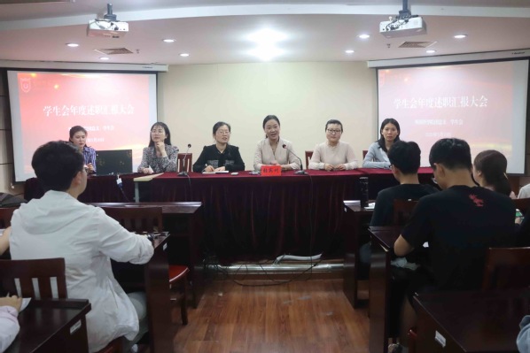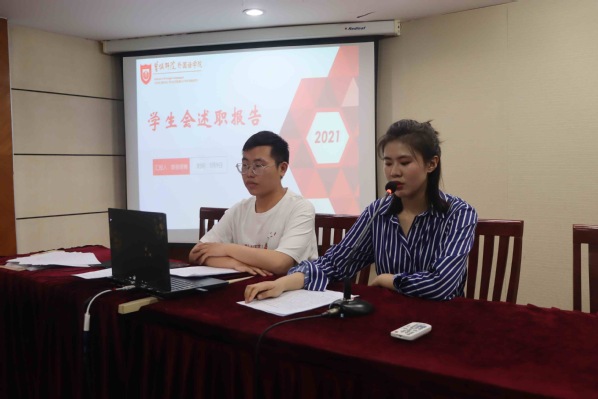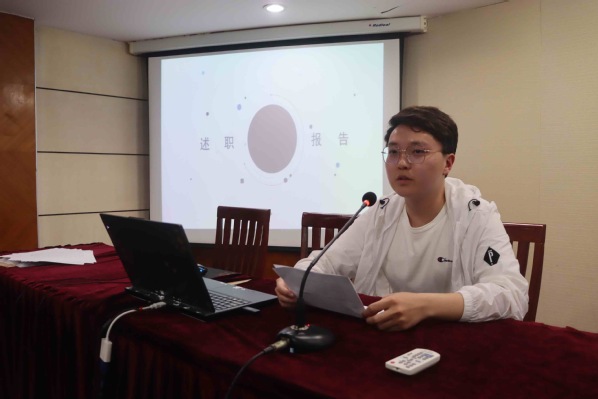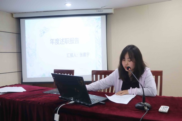 会议伊始,张宾州书记细数学院的重大工作成果,高度评价员工会这一年以来的工作,充分肯定各部门取得的工作成绩。随后由员工会主席团汇报一年的工作情况,继而由各部门代表汇报,他们从各自部门工作的开展情况、工作总结、工作不足、发展规划等方面依次述职,总结本部门这一年工作成绩和不足之处,提出改进方法,明确未来部门目标。各部门通过述职,交流工作经验,达到资源共享的会议目标。最后,团总支副书记孙明艳为本次述职报告大会做总结。同学们在孙明艳老师的总结中重温了这一年员工会走过的风风雨雨,现场掌声不断,高潮迭起,会议到此圆满结束。