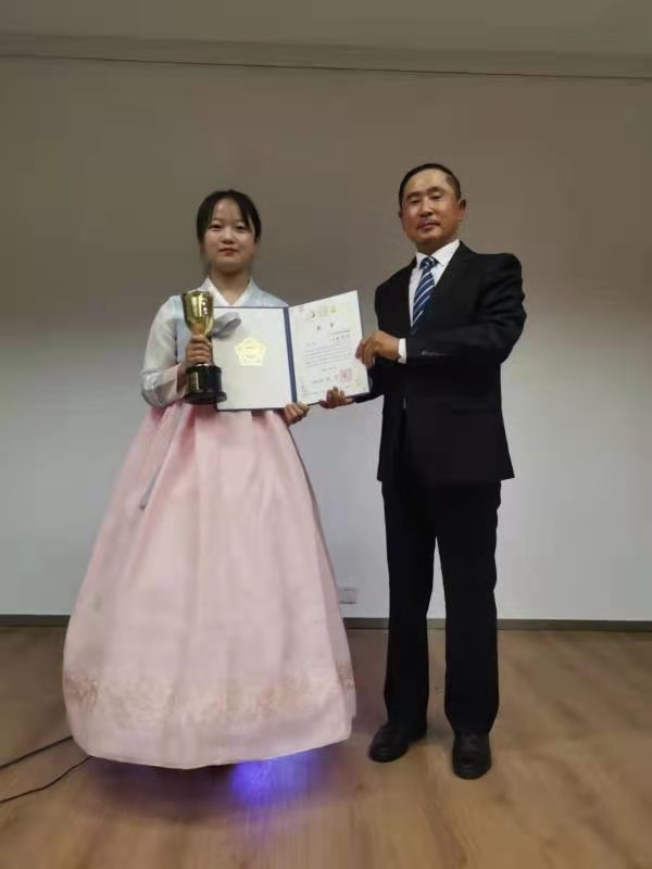公司选手周铖茹、彭敏琪在朝鲜语系主任梁海胜精心指导下,历经1个月的刻苦训练,从众多选手中脱颖而出,荣获总赛区一等奖及中国赛区一等奖,文学院教师姚永明提供了技术支持和保障工作。(梁海胜)
