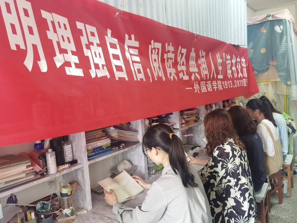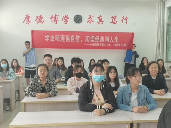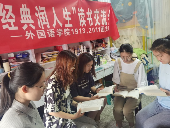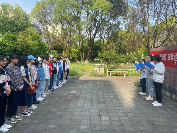 英语第四读书会开展了操场读书交流会与宿舍读书谈心得活动。由194团支书沈晗主讲,194、204团支部全体团员佩戴团徽,围坐在足球门前听讲。194团支部以宿舍为单位朗诵、翻译及讲解《英国文学选读》中的5首经典英文诗歌,204团支部成员参与讨论。