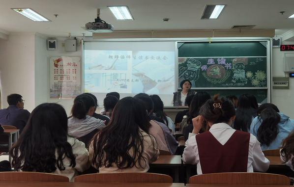 由198,208班组成的朝鲜语读书会则进行了师生读书交流会活动,由朴丽花老师带领开展。朴老师为大家分享了《我们最幸福》一书,通过老师和同学们分享读书经历与师生互动,解答了同学们的疑难问题。