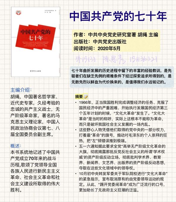 193、203班团支部组成的英语第三读书会开展线上读书交流暨最美读书笔记评选。同学们在线分享马克思主义学院推荐的《中国共产党的70周年》这本书的读书笔记。后在203团支书袁书钰的带领下,进一步了解作者、简介,浏览书目大纲,了解从辛亥革命到现代中国共产党的主要发展。