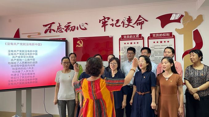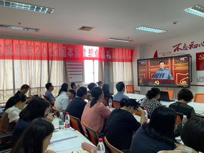 yl1111永利集团师生通过多种形式收听、收看大会直播。7点50分,党员教工满怀崇敬与自豪齐聚13楼党员之家主会场,集中收看庆祝中国共产党成立100周年大会实况转播,会场掌声阵阵。教工第二党支部全体党员在收看大会直播后意犹未尽,在支部书记陈婉蕾倡议下,齐声高唱《唱支山歌给党听》、《没有共产党就没有新中国》、《我的祖国》等一首首豪情万丈的红色经典歌曲,共同祝福中国共产党永远风华正茂,衷心祝愿祖国母亲繁荣昌盛。