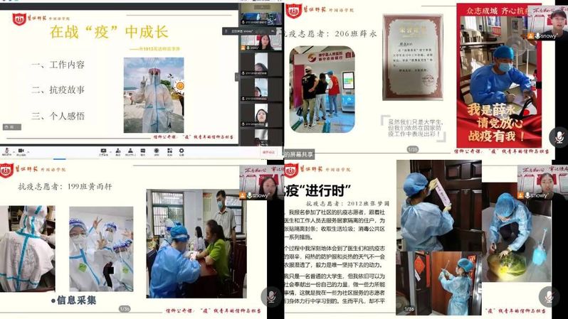 四是抗疫故事齐分享。10月2日下午,学院面向2021级全体同学于线上举办“信仰公开课——“疫”线青年的信仰与担当”抗疫故事分享会。本次信仰公开课邀请四位抗疫志愿者代表分享,他们分别从个人经历、服务区域、抗疫感想等方面进行讲述,现场同学深受鼓舞和感动,纷纷表示要练就过硬本领,让自己在奉献和奋斗中绽放光彩。
