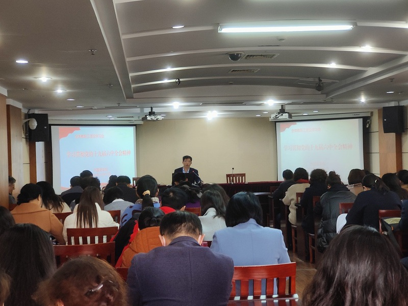 大家首先观看了《十九届六中全会》的会议视频,接着,朱京凤带领全体教职工从夺取新民主主义革命伟大胜利、完成社会主义革命和推进社会主义建设、进行改革开放和社会主义现代化建设、开创中国特色社会主义新时代四个方面集体学习了《中共中央关于党的百年奋斗重大成就和历史经验的决议》,并就中国共产党百年奋斗的历史意义进行了详细解读。