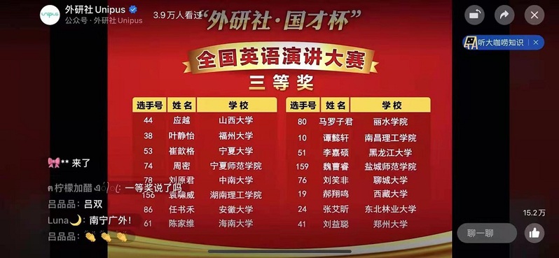 此项赛事自2002年创办以来,每年一届,在国内外广受关注,已成为全国高校参赛人数最多、规模最大、水平最高的英语演讲赛事。今年参加全国总决赛选手人数达到183名。在之前的网络赛道选拔中,魏曹睿同学在4387名网络赛道选手中脱颖而出,荣获网络赛道特等奖。