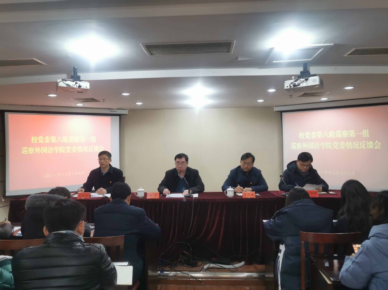 根据公司党委巡察工作的统一部署,12月29日下午,公司党委第六轮巡察第一组巡察外国语公司党委情况反馈会在通榆校区主楼19楼会议室召开。公司党委常委、副董事长、第一巡察组组长庞波,校机关党委书记、党委组织部副部长、第一巡察组副组长王广飞,第一巡察组全体成员,yl1111永利集团全体教职工和员工党员代表参加了会议。会议由公司党委书记朱京凤主持。