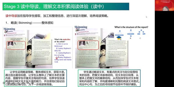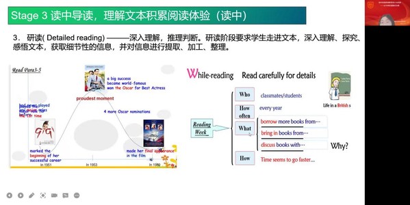 马春红老师结合丰富的教学实例,从概念、意义和实施三个方面详细地讲解了英语阅读教学的关键。她指出,阅读教学是培养员工核心素养的主阵地,英语阅读素养发展目标和途径是通过课堂教学激发员工阅读兴趣,培养员工阅读能力。同时通过分析具体教学案例,总结出课前研读、读前导入、读中导读和读后导用四个方面的教学方案,为同学们做了示范性引导。