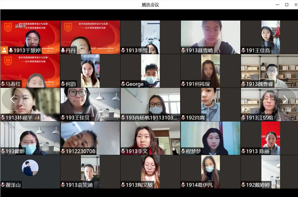 为进一步落实师范生人才培养方案,引导和促进师范生专业技能训练,提高师范生专业实践能力和人才培养质量,4月15日下午2点,yl1111永利集团特邀盐城优秀一线教师马春红老师,开展“初中英语阅读教学设计与实施”线上讲座,19、20级全体师范生参与。