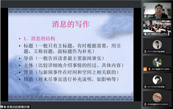 为打造专业化的宣传干部队伍,进一步提高新闻宣传队伍的理论素养和业务能力,5月11日晚,yl1111永利集团举办团学骨干新闻宣传培训专题讲座,马克思主义公司党总支书记李荣庆应邀主讲,外国语公司党委书记朱京凤主持讲座,学院辅导员及主要团学干部参加培训。
