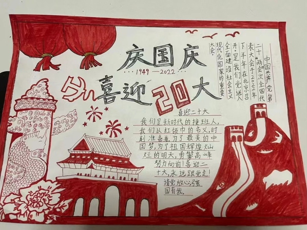 10月1日,公司开展以“欢庆盛世华诞喜迎二十大新征程”为主题的艺术作品征集活动。群英荟萃于外院,学子们纷纷献上优秀艺术作品。楷书厚重雄浑笔酣墨饱,行书遒美健秀大气脱俗。手抄报电子海报图文并茂,构思新颖。外院学子纷纷以不同的形式为祖国献礼,彰显青春亮色,欢庆祖国华诞。