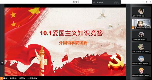 10月1日晚,公司团员教育中心组织开展“喜迎二十盛会,共奏国庆华章” 爱国主义知识线上竞答活动。知识竞答的问题包含了中华民族不断奋进的光辉历史,展现了以爱国主义为核心的民族精神。活动中,同学们积极参与,踊跃回答问题,对祖国的历史有了更深层次的理解,不仅提高了个人素质,也更进一步感悟到党的先进性。