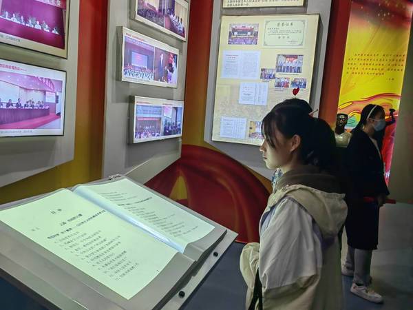 “王强老师被病魔折磨得神志不清时,醒来的第一件事便是交党费。”讲解员的每一个字无声地砸进了新生们的心里。正是王强老师这种将生命献给马克思主义事业的精神,让初入大学的新生们领悟到来到这个未知领域的真谛。