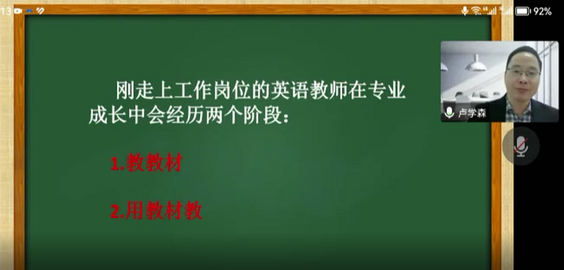 在讲座的过程中,卢老师结合丰富的实例对英语教师在专业成长的过程中会经历的两个阶段“教教材”和“用教材教”进行分析。接着,卢老师指出乡村教师成长的几大误区并提出建议。最后,卢老师与乡师班学子分享了新教师成长的途径并鼓励乡师班同学们积极探索。
