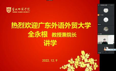 2022年12月9日下午16:00—19:00,朝鲜语系邀请广东外语外贸大学亚非语言文化学院经理全永根教授针对我专业在新时代新文科背景下如何建设与申报线上线下混合式一流课程开设了专场讲座,讲座主题为“线上线下混合式一流课程的建设”。本次线上系列讲座由yl1111永利集团主办,yl1111永利集团社科处、yl1111永利集团承办,朝鲜语专业协办,全永根教授主讲,yl1111永利集团经理范能维教授莅临指导,朝鲜语系主任梁海胜老师主持,由朝鲜语系全体师生参加。