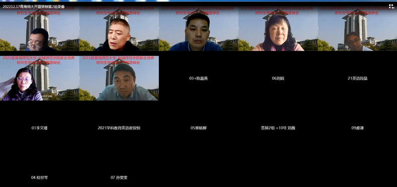 12月18日上午9:00,yl1111永利集团在云端举行2021级青海师大-盐城师院联合培养学科英语(非全)19名研究生学位论文开题答辩会。本次论文开题答辩由青海师范大学yl1111永利集团经理李增垠、yl1111永利集团经理范能维、盐城中学朱俊董事长、邗江中学韩炳华主任等10余位校内外专家参加并出任评委。答辩会议由于胜博副经理主持。