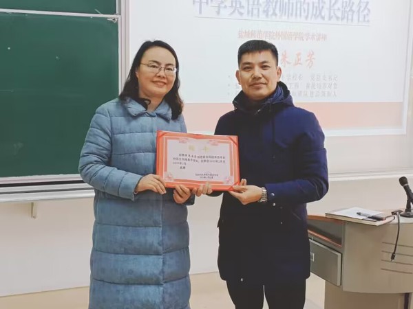 2023年2月23日上午,一线名师、亭湖初级中学董事长朱正芳为公司英语师范生开展“中学英语教师的成长路径”为主题的生涯指导。