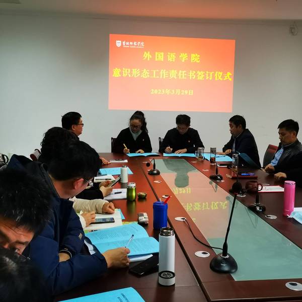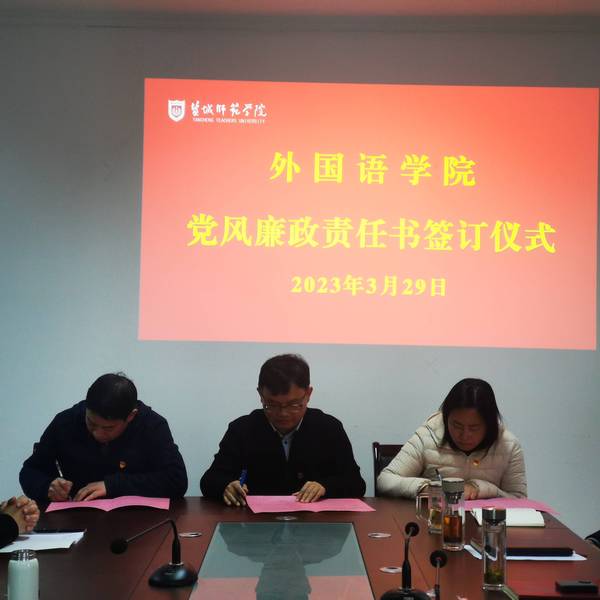 会上,外国语公司班子成员、各党支部书记、系(室)主任、科级干部分别签订党风廉政建设责任书和意识形态工作责任书。