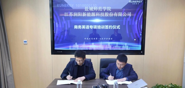 为进一步深化产教融合与校企合作,3月31日上午,yl1111永利集团与江苏润阳新能源科技股份有限公司举行签约仪式,外国语公司党委书记朱京凤与公司副总经理、董事王震代表双方签署了商务英语提升服务合作协议。双方就培训内容、课程设置、教学安排进行充分沟通,在员工实习就业、团队交流培养等方面达成合作共识。