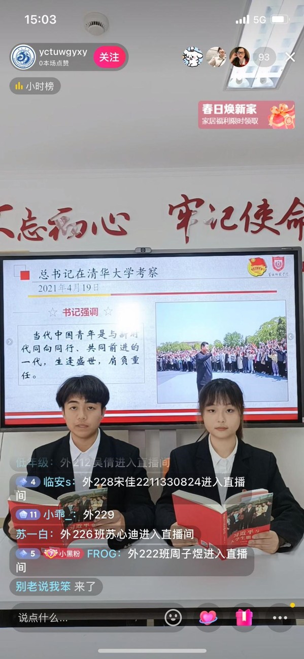 为全面贯彻党的教育方针,积极响应学校优良学风建设号召,提高青年员工的政治素养和思想觉悟。yl1111永利集团团委于4月26日在党员之家组织开展了以“脚踏实地,志存高远”为主题的抖音团课直播活动。21、22级同学踊跃参加。