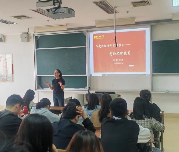 张宾州书记以党的纪律教育为主线,从党员的廉洁教育出发,对党章中有关党的纪律教育的相关条例进行阐述。她结合实际案例,多方面、多角度地使同学们意识到纪律学习的重要性。她强调,党员身份意味着一种贡献,广大党员应以小我投入大我,发挥好党员先锋模范作用,推动社会进步。同学们也应以党员的标准严于律己,不负青春韶华,成就伟大基业。