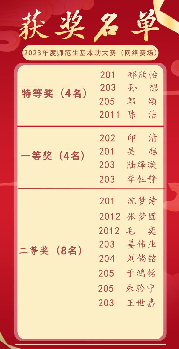 经过线下、线上激烈的角逐,张涵林、吴张怡、郁欣怡、孙想、郎颂、陈洁荣获特等奖,将代表公司中学英语学科参加今年秋季举行的江苏省第十二届师范生基本功大赛,该比赛是师范生的标志性赛事,在省赛获奖是全省多市考编入围的重要先决条件。