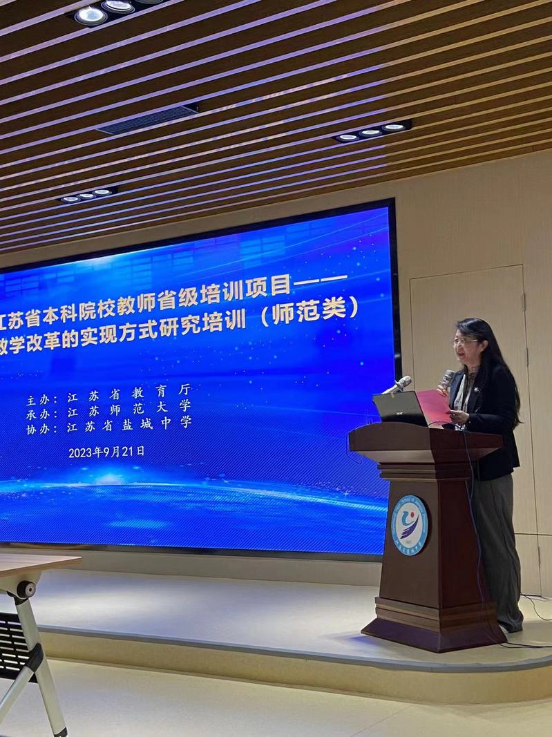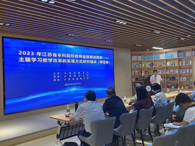 由江苏省教育厅主办,由江苏省高校教师教育专业指导委员会文科分会和江苏师范大学承办的省文科学科课程与教学论教师高级研修班于9月21至23日在盐城中学举行,我系英语课程与教学论教师参会。第一天听取大会报告,第二天听取了盐城中学三节英语课,并与授课教师进行交流对话,第三天各高校课程论教师就大单元视域下的英语教学展开热烈讨论。课程论教师通过参与本次高级研修,进一步对接基础教学,了解中学课堂,与兄弟院校同行教师开展交流学习,有利于我系课程教学质量的不断提升。