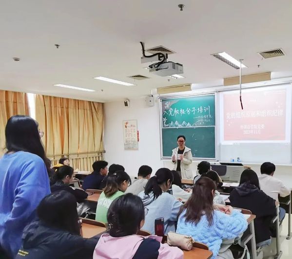 永葆初心,奋楫笃行。为进一步提高入党积极分子理论知识水平,端正员工入党动机,坚定入党决心,11月8日下午,2023年第四期入党积极分子培训于主楼B305教室开展,本次党课主讲人为外国语公司党委书记张宾州书记,主题为“党的组织原则和纪律”,外院秋学期入党积极分子参与。