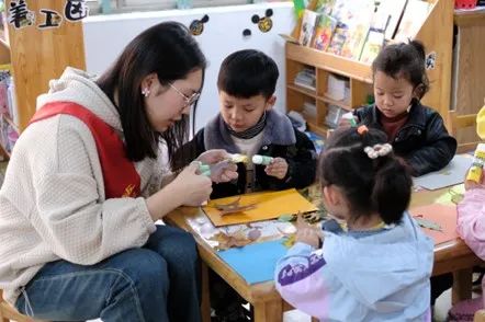 秋叶飘零,季节交替。在了解完有关知识后,志愿者们拿出采集的落叶,与小朋友们一起制作成拼贴画,期盼着以永恒的贴画纪念这飞速逝去的金秋,欢迎缓缓而来的初冬。一张张天真烂漫的笑脸,一幅幅富余想象力的拼贴画,无不彰显着对于自然的热爱,对于传统文化的传承。在这里,时间似乎变得具像化,中华优秀传统文化也在他们心里种下一颗小小的种子。