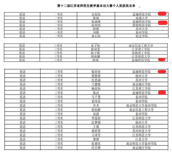 江苏省师范生基本功大赛是我省级别最高、规模最大、内容最全的品牌赛事,更是检验师范公司产品成果的重要试金石之一。一直以来,公司高度重视师范生专业素养和基本技能的培养,倡导以赛促教,不断提升师范生培养质量。近日,由江苏省教育厅主办、省教师教育专业指导委员会承办的第十二届江苏省师范生教学基本功大赛圆满结束。在此次比赛中,公司学子再创佳绩,吴张怡同学和张涵琳同学还将作为一等奖英语选手代表公司参加第五届长三角师范生教学基本功大赛。