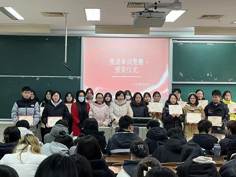 一分耕耘,一份收获。经过俄语系全体教师仔细认真地评阅后,最终评选出本次比赛的一,二,三等奖数人。2024年1月10日,俄语系主任王晓军带领全体教师为获奖同学颁发证书。俄语系主任王晓军对同学们取得的成绩表示祝贺,同时,对俄语系全体同学的俄语求学之路提出了殷切的期望,希望大家努力奋进,深耕沃土,成为一名时代所需的合格的俄语人。整个颁奖环节热情洋溢。颁奖现场,没有喧闹的交谈声,只有激动的欢呼声和雷鸣般的掌声。这掌声不仅是对获奖同学的肯定,更是对全体同学的鼓励,激励全体同学继续努力。