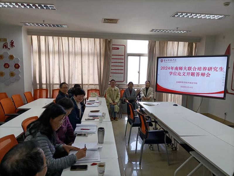 3月10日,按照南京师范大学和学校研究生处统一部署,公司举行了与南京师范大学联合培养的2022级学科教学(英语)3位硕士研究生论文开题答辩会。答辩小组由南师大教师教育学院博士生导师陈莉萍教授、盐城中学朱俊董事长、公司杨雪芹教授、李二占教授、陈胜利教授、张军广副教授6位基础教育领域资深专家组成,答辩会由朱俊董事长主持。