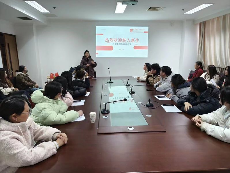 会议伊始,杨丹首先对转入新生表示热烈的欢迎。她从学院的基本情况、课程设置、教学管理等方面做了简单的介绍,希望同学们能够尽快融入班集体,努力适应新变化。