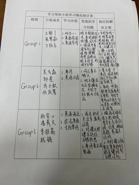 活动前期,各班根据班级同学实际学习情况,学委确定帮扶对象后,生活权益部成员们通过问卷调查、面对面交流等方式,全面了解同学们的学业需求和困难所在,制作帮扶对象学习情况统计表,以问题为导向,迅速成立学习帮扶小组,制定详细的帮扶计划,并邀请高年级的韦家敏学姐为大家进行个性化辅导。