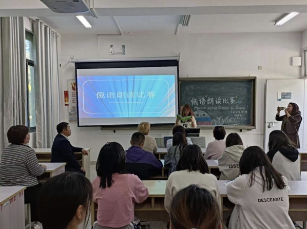 下午,教授们到达B7—105教室,旁听俄语朗诵比赛。俄语系学子们精神饱满、热情高涨,教授们频频点头,以示赞许。同学们把握学习机会,提出自己在俄语听、说、读、写方面的困惑,俄方专家对同学们的问题一一进行解答,并就如何高效学习俄语为同学们提出了宝贵的建议。