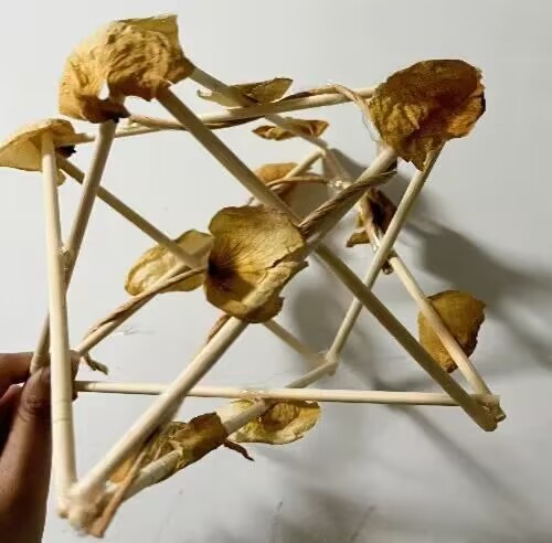 第二部作品作品源自外23(1)英语S班沙漠同学的奇思妙想,沙漠同学创造性的利用闲置的一次性筷子,变废为宝,使之成为兼具实用性和装饰性的巧思,为枯燥的生活增添了一份乐趣,带来一丝光亮。