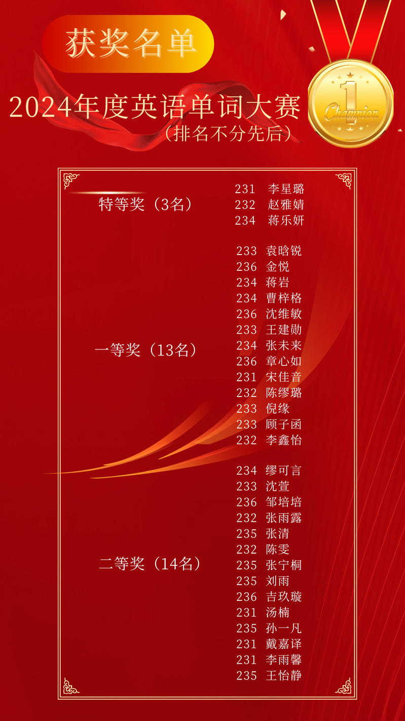 本次决赛经过前期2023级英语专业全年级范围的初赛选拔,采取笔试形式,对参赛者的词汇掌握程度进行了考察,共有30名选手脱颖而出进入决赛。经过激烈角逐,最终评选出特等奖3名,一等奖13名和二等奖14名。