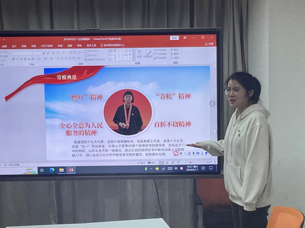 班会课上,老师带领同学们从劳模精神的基本内涵、劳模精神昭示的新时代劳动教育的价值取向以及劳模精神所凝聚的建功新时代的磅礴伟力三个方面深入了解劳模精神,集中学习了习近平总书记在全国教育大会上对广老员工涵养深厚劳动情怀的谆谆嘱托,鼓励青年人近距离接触劳动模范、聆听劳模故事、感受劳模精神,在实践中体悟劳模精神,在磨炼意志和增长才干中感受劳动的乐趣和收获,从而培育辛勤劳动、诚实劳动、创造性劳动的精神气质。