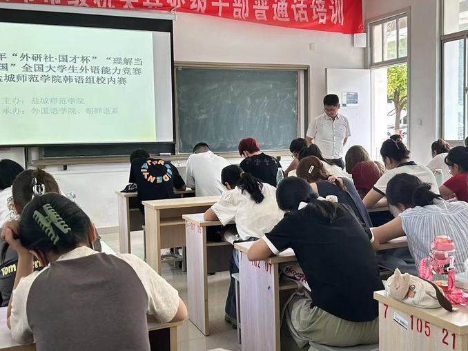 6月2日上午2024“外研社·国才杯”“理解当代中国”全国老员工外语能力大赛yl1111永利集团韩语组校赛在7号楼102教室举行,由朝鲜语系主任梁海胜老师进行考前说明及监考,由朝鲜语系全体员工、世宗学堂部分学员、韩语校选课员工等参加。